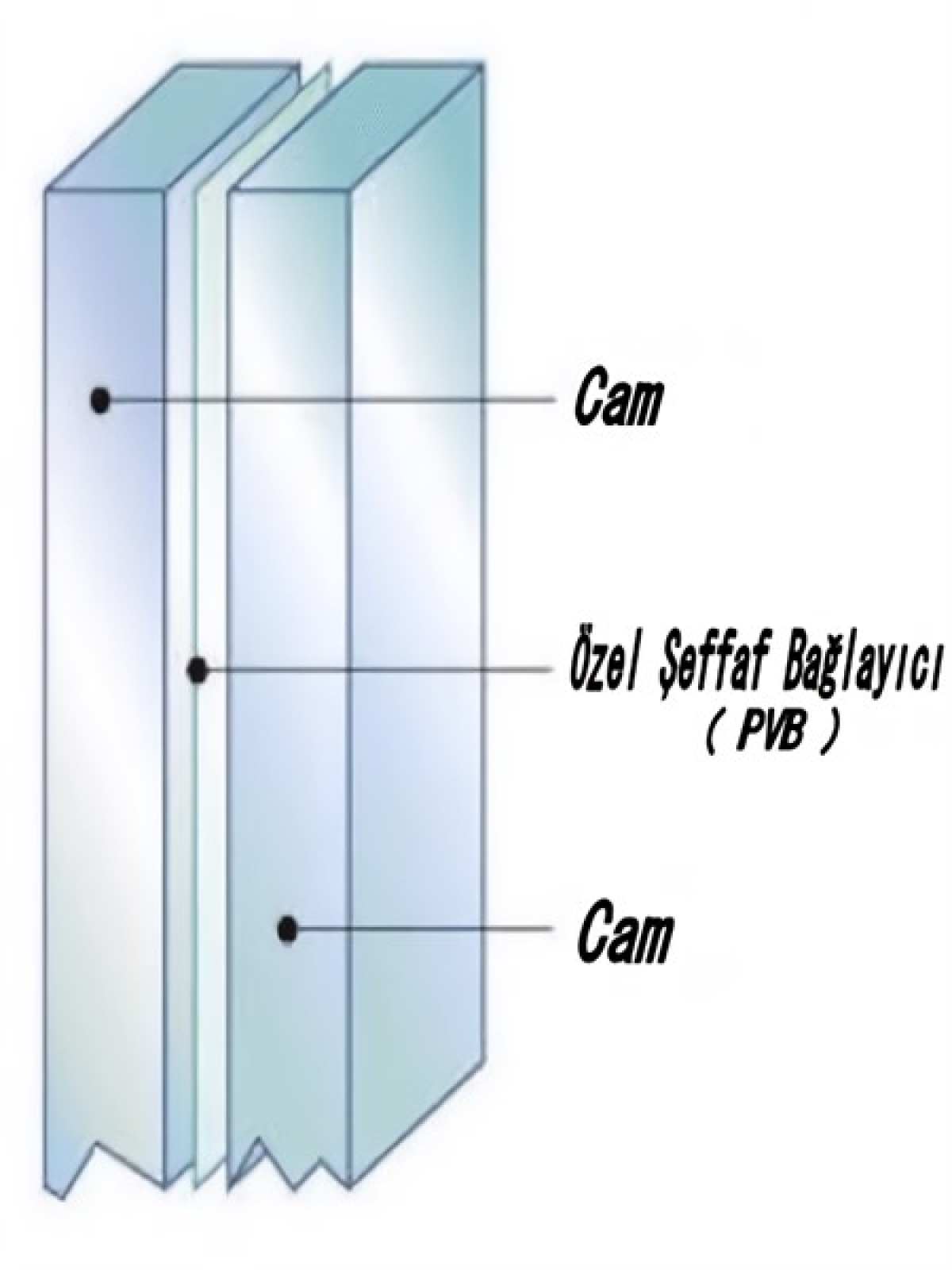 Lamine cam üretimimiz renkli veya renksiz özel bağlayıcı polivinil butiral (PVB) veya İonaplast (Sentry Glas) tabakalar yardımıyla iki veya daha fazla cam plakanın ısı ve basınç altında birleştirilmesi ile yapılmaktadır.